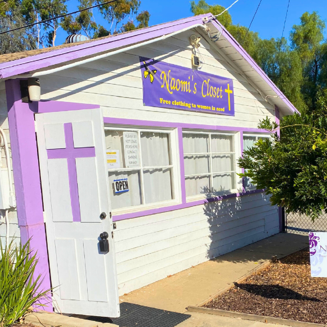 Naomi’s Closet is a clothing ministry, providing clothing, hygiene ncessitties and more to women of the community. Located in a small white and purple building in the church parking lot.
